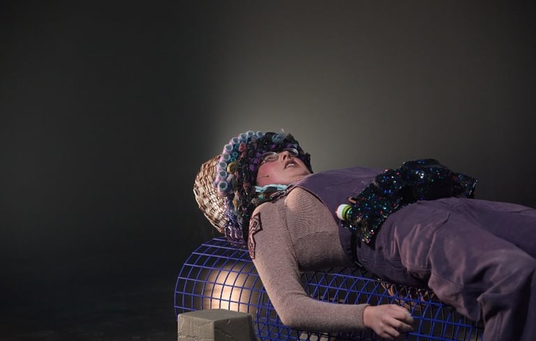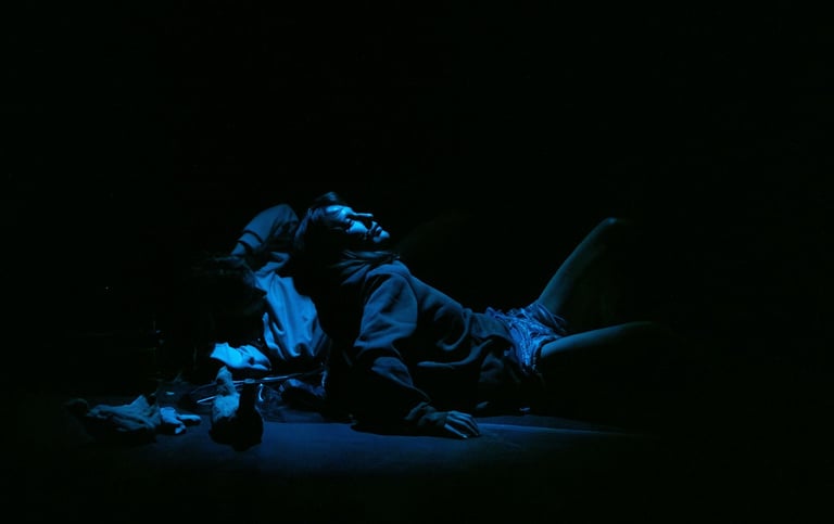 In 2017, a performance based on "Una chiva" was presented in teatro Kafka, in Buenos Aires, Argentina, performed by Ula Liagaitė. Since then, a connection has formed between [la oTra] and Liagaitė, joined by an artistic team from Lithuania. These intersections shape the recreation of the work. Out of the desire and interest to continue exploring vital and committed practices, the 2021 version of “Una chiva” emerged. This version brings into dialogue the possibilities of live performance with previous audiovisual materials—both videos of the original work and rehearsal recordings—culminating in a kaleidoscopic piece. In this way, Una chiva becomes a practice, an exercise, an infinite rehearsal.