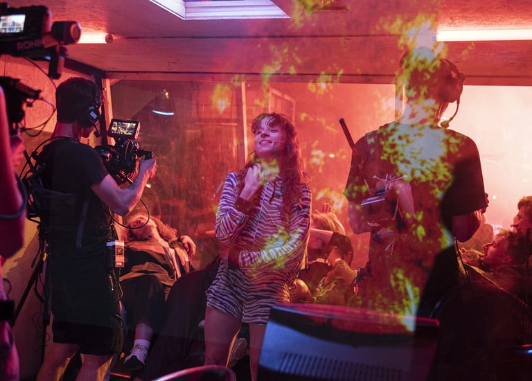 The multilingual ensemble led by director, video artist, and raver Łukasz Twarkowski undertook a self-experiment. For several weeks, they followed the example of earlier dropouts in human history, withdrawing from the flow of time, cutting off their everyday lives, retreating into the Lithuanian forests and confronting existential questions, but also their despair and desire. Twarkowski accompanied this process with his camera and, together with author Joanna Bednarczyk, visual artist Fabien Lédé, composer Bogumil Misala, DJ SPECTRIBE, choreographer Paweł Sakowicz, and the actors, created a complex portrait of the present, with all its social challenges and individual hardships. The result for the stage is a six-hour mockumentary that chooses perspectives from the past and future to bring our times into focus. Techno, film, theater, and visual art combine to create a world of their own this evening. The audience is invited to explore it freely: to come, go, observe, become part of it, dance with the performers, eat, take a sauna, and reflect with them on new forms of coexistence. Ultimately, the rave stands as a resistance against the powerlessness of our time.
